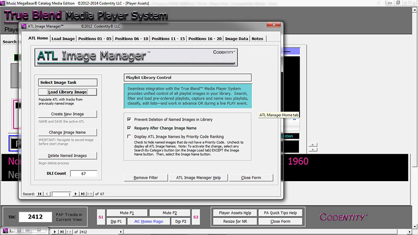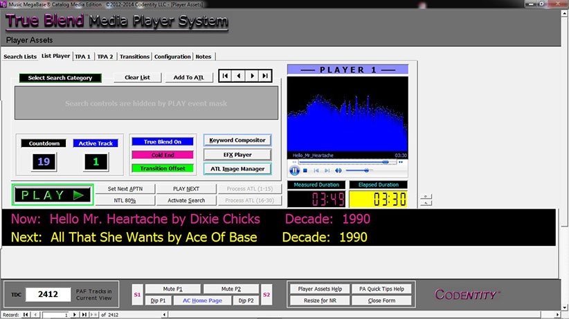 The True Blend™ Media Player System (MPS) is only licensed as part of the Music MegaBase™ Catalog (MMBC) Media Edition. MPS and MMBC are powered by Microsoft® Access™ and a "runtime" version of Access™ is included with the software distribution package.