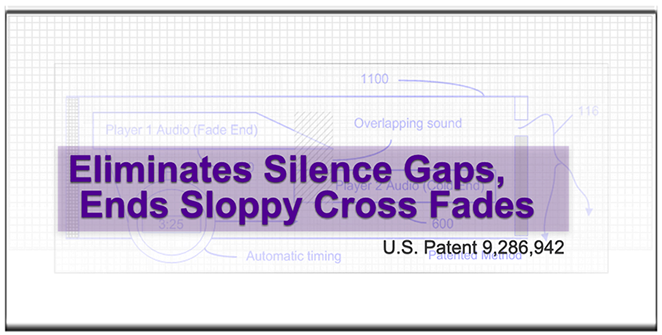 Unlike other patented designs, Codentity Transition Technology achieves its precision automatic mixing performance WITHOUT CPU overhead. CTT measures, calculates and executes natural transitions—in only milliseconds. (See LIST of other 'gapless playback' patents—learn how they are different.)