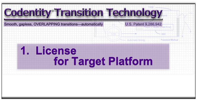 Get technical and business process information on the Codentity® Transition Technology patent licensing page. Also learn which major companies have invested in perfecting their brand of Gapless Playback Technology (GPT). And, get immediate answers to your FAQ.