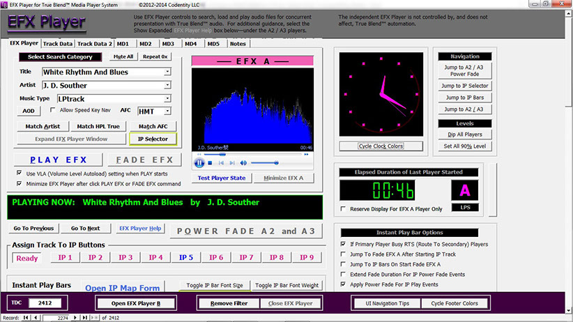 For example: Using a tablet-sized display with Bluetooth ON and connected to a Bluetooth receiving device (such as the Amazon®Basics Bluetooth 4.0 Audio Receiver), DJs or audio operators can be up to 30-feet away from the sound console and have complete TAP-TOUCH control of the True Blend™ and EFX players. Of course, interface navigation and song selection is made much eaiser if the new TAP-TOUCH capabilities are activated. One-click / tap turns them on in the UDS Manager, or from the AC Home page.