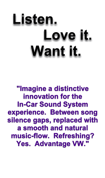 If a much-improved listener experience were offered with VW cars, a distinctive feature advantage could be claimed by the marketing team. After 100 years of refinement in the auto industry, most improvements now tend to be evolutionary, not revolutionary.