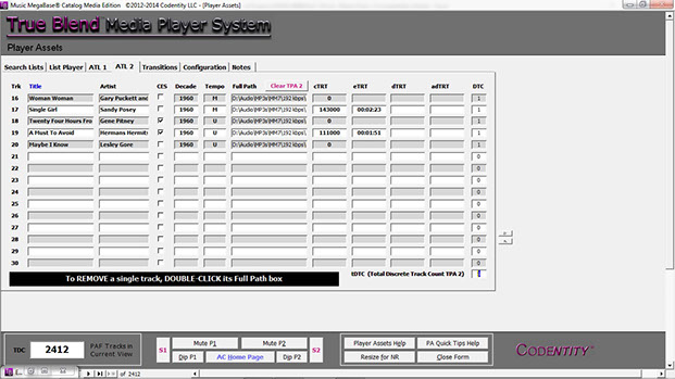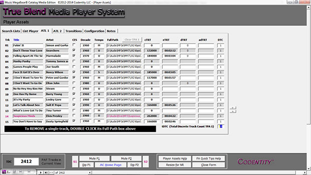 Codentity's patented transition technology is a major feature of the Music MegaBase™ Catalog Media Edition product suite featuring the True Blend® Media Player System. The latest version of the software has been optimized for TAP-TOUCH displays and small format screens including Windows® tablets. It is available now for Windows® 10 / 8.1 / 8 / 7 / XP PCs and tablets. The Music MegaBase™ Catalog product suite includes the following integrated software titles: